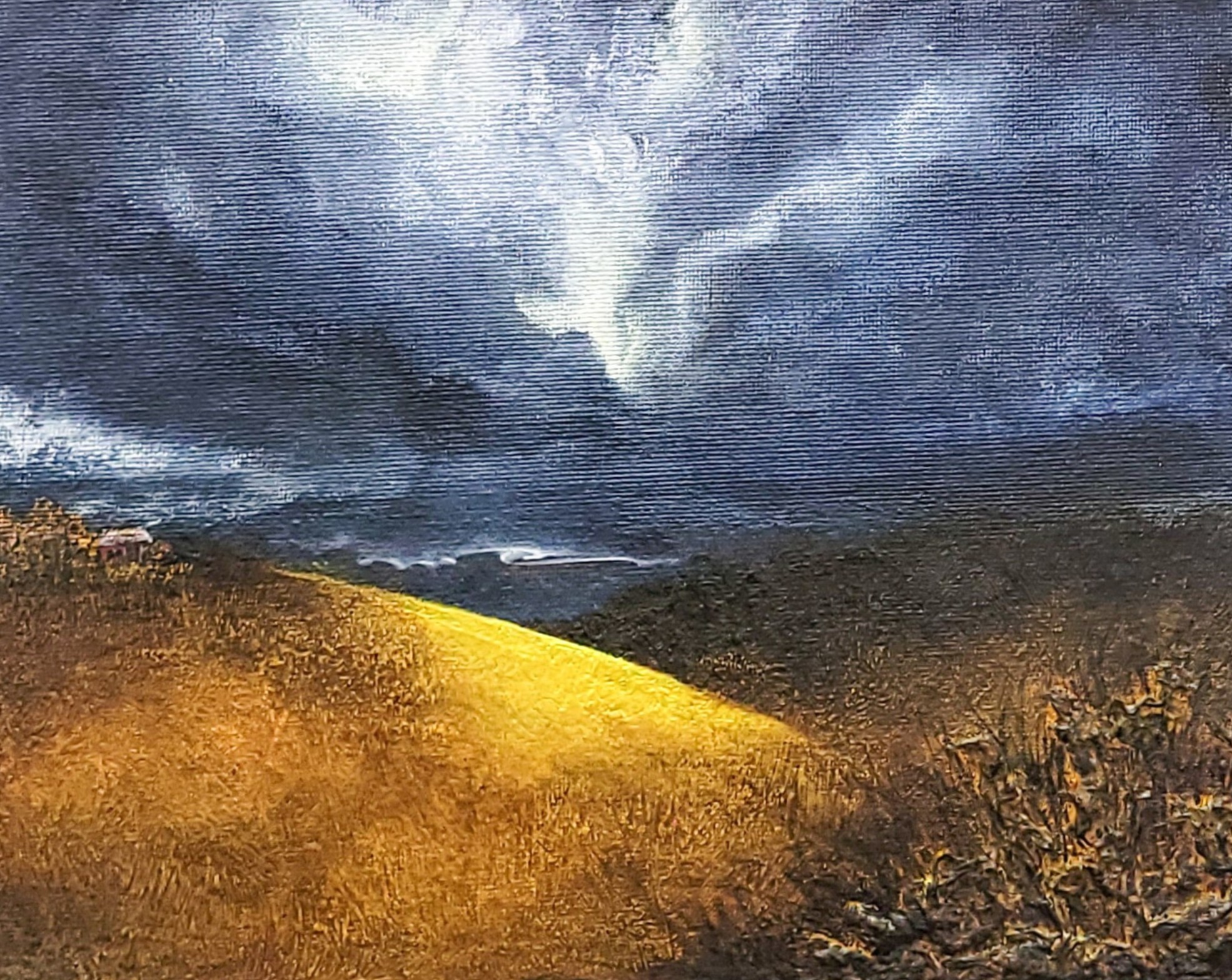 A beautiful moment of being present and admiring the natural beauty under the moonlight. A farm nearby our home in Portlaoise, which once seemed like just an ordinary place… but when you are truly present, you pause, look, and connect, and you soon realize that everything has started talking to you, mesmerizing you to engage in it. This is what this painting is about… living in the moment…